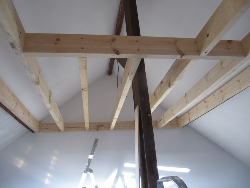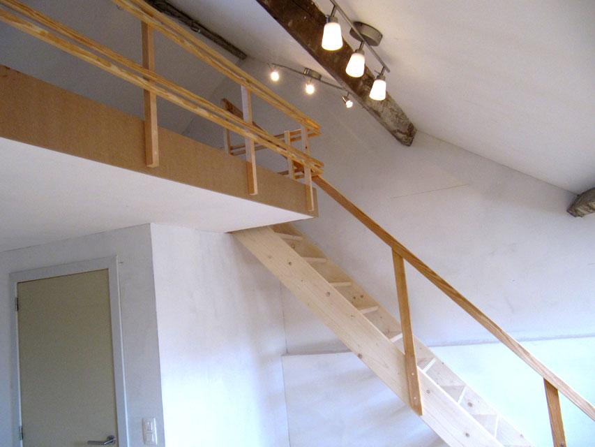 14. Mezzanine, gyproc, plafonnage, électricité, portes, escalier (du grenier au studio)