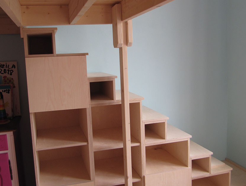 27. Mezzanine avec escalier/meuble en multiplis bouleau