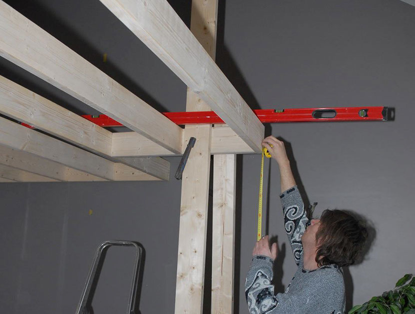 3. Mezzanine avec poteau placé dans le plafond, escalier, gyproc, spots