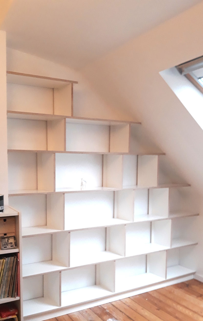 9. Bibliothèque système T en multiplis bouleau