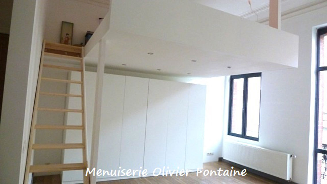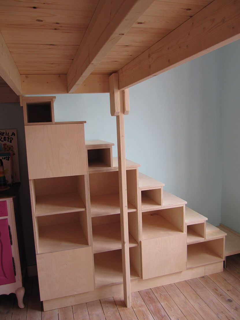 27. Mezzanine avec escalier/meuble en multiplis bouleau.