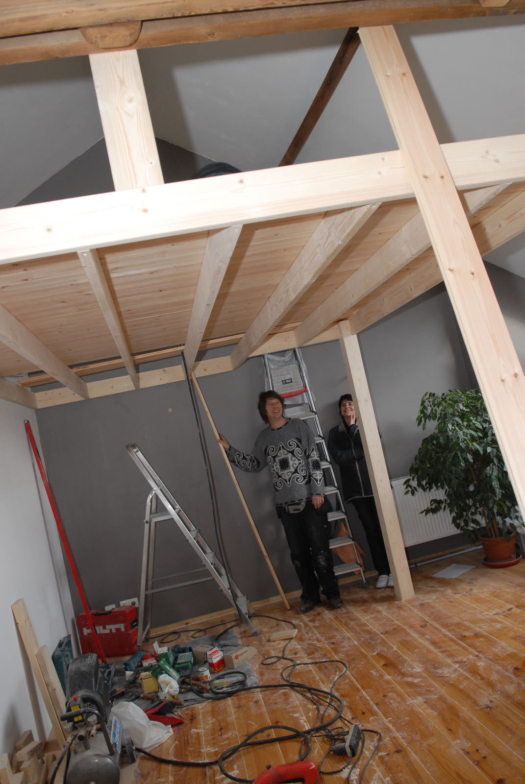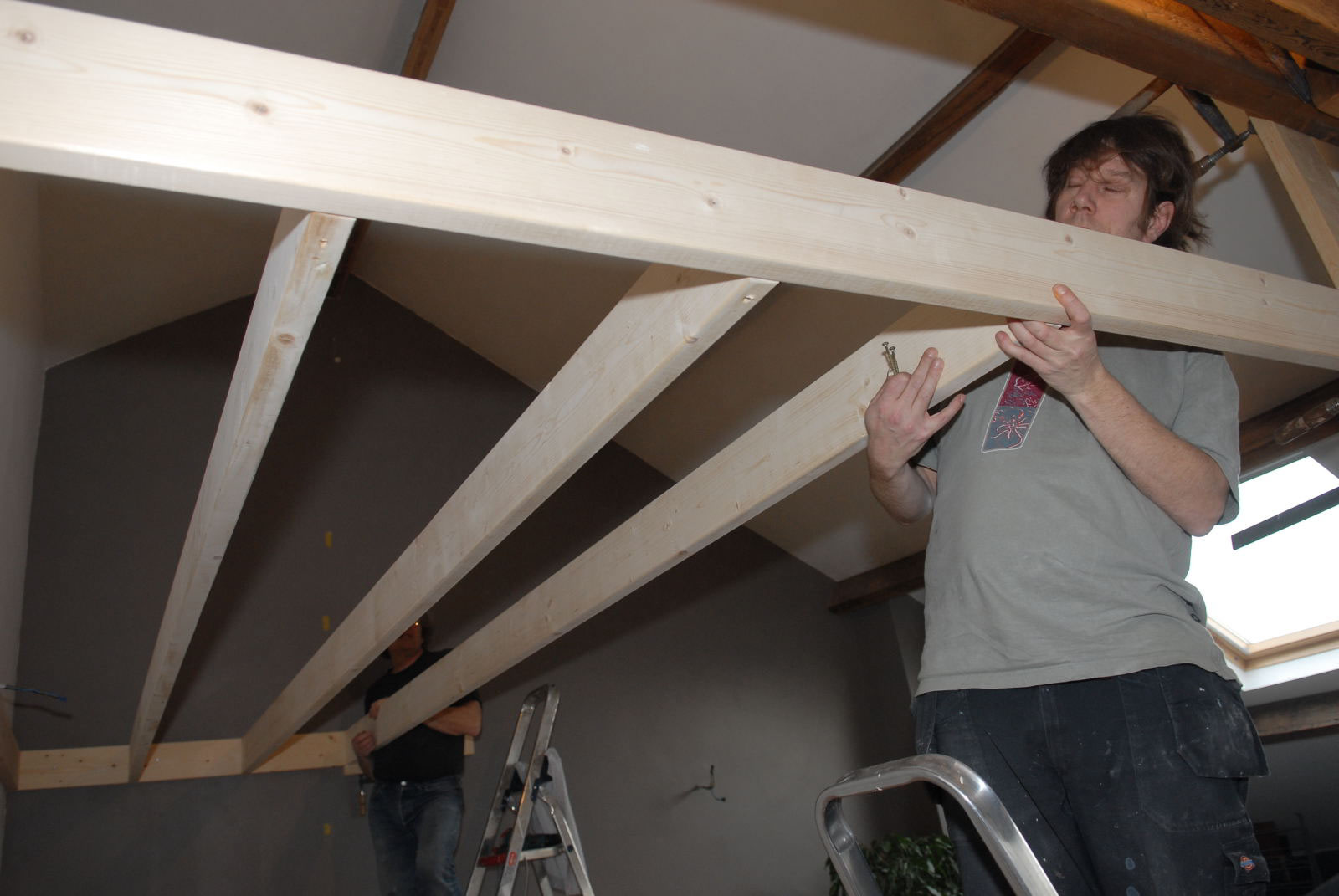 3. Mezzanine avec poteau placé dans le plafond, escalier, gyproc, spots