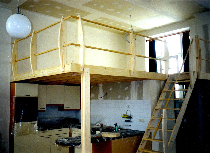 27. Mezzanine avec escalier/meuble en multiplis bouleau