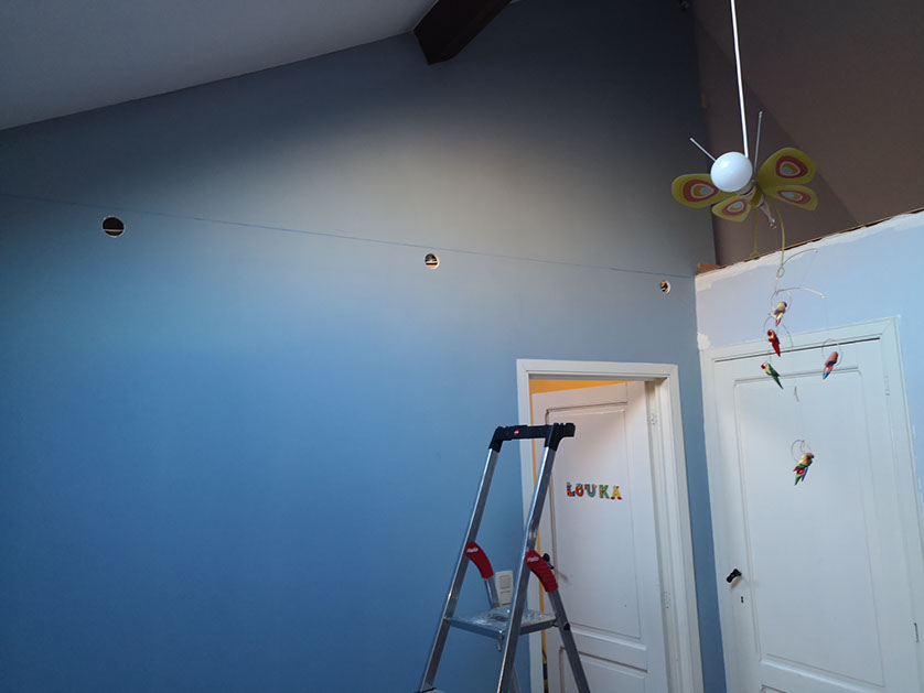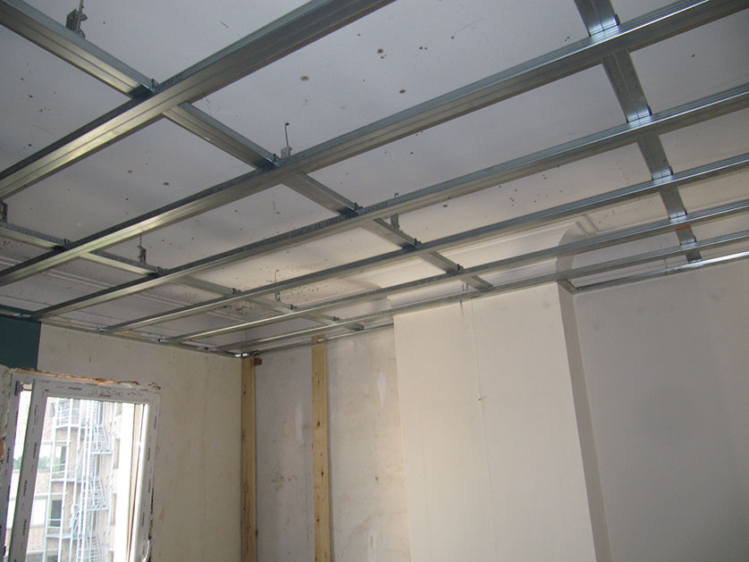 3. Mezzanine avec poteau placé dans le plafond, escalier, gyproc, spots